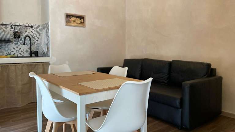 Die Ferienwohnung besteht aus einem Schlafzimmer, einem Wohnzimmer sowie einer voll ausgestatteten Küche mit Kühlschrank und Kaffeemaschine. Zur Ausstattung gehört zudem ein Badezimmer mit Bidet und Dusche. Handtücher und Bettwäsche werden bereitgestellt. Die Wohnung ist klimatisiert und verfügt über einen Balkon.
