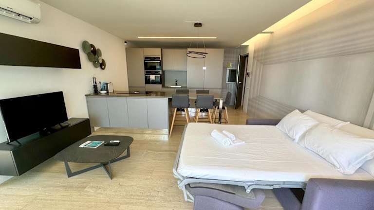 Die Unterkunft hat eine Klimaanlage und besteht aus einem Schlafzimmer, einem Wohnzimmer sowie einer voll ausgestatteten Küche mit Kühlschrank und Kaffeemaschine. Es sind zwei Badezimmer vorhanden, die mit einem Bidet und einer Dusche ausgestattet sind. Zur Unterhaltung steht ein Flachbild-TV zur Verfügung.