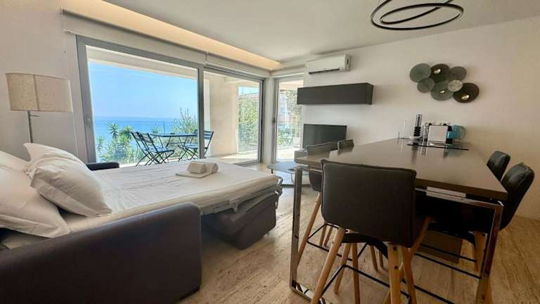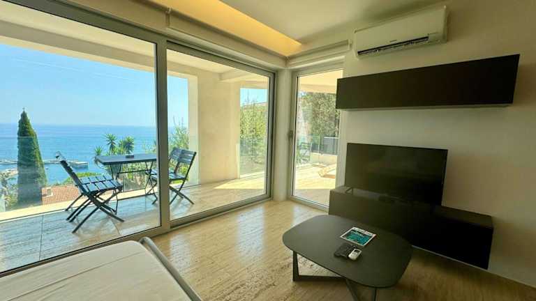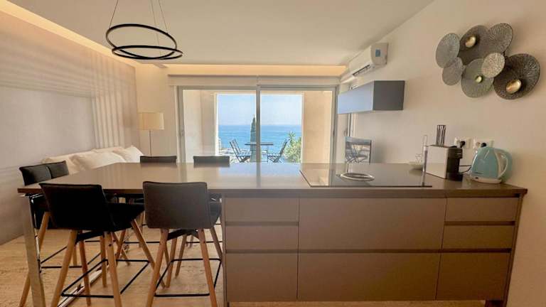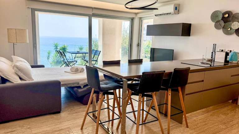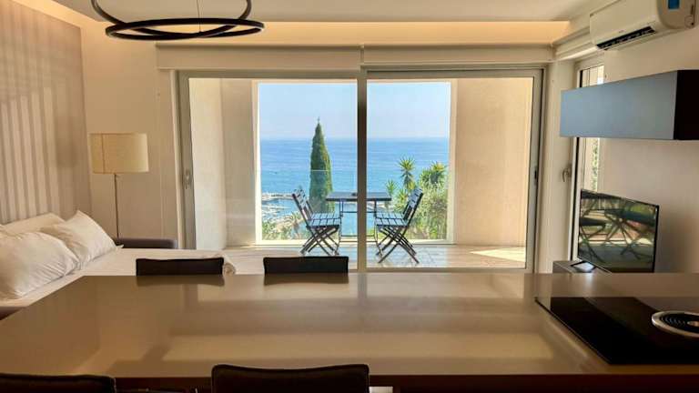 Die Ferienwohnung Mont des Olives - Cap D'ail - app4 besticht durch einen herrlichen Meerblick und verfügt über eine Terrasse sowie einen Balkon. Für die Gäste steht ein saisonaler Aussenpool zur Verfügung. Zudem wird eine kostenlose Parkiermöglichkeit angeboten.