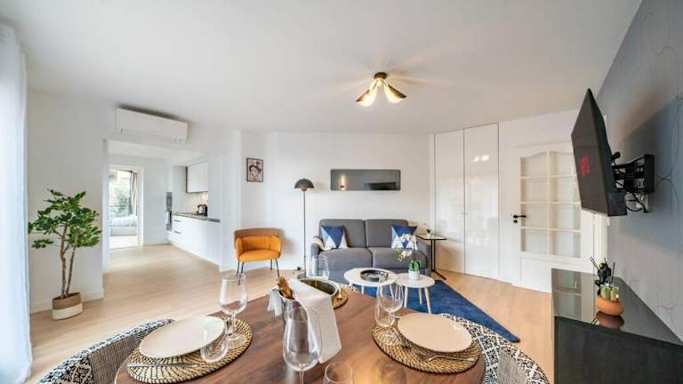 Die Ferienwohnung besteht aus 2 Schlafzimmern, einem Wohnzimmer und einer voll ausgestatteten Küche, die mit einem Kühlschrank und einer Kaffeemaschine ausgestattet ist. Es gibt ein Badezimmer mit Dusche und kostenlosen Pflegeprodukten sowie einen Flachbild-TV in der Unterkunft. Klimaanlage ist ebenfalls vorhanden.