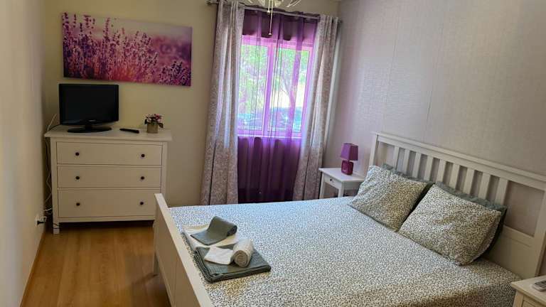 Die Unterkunft umfasst zwei Schlafzimmer, ein Wohnzimmer und eine voll ausgestattete Küche mit Kühlschrank und Kaffeemaschine. Es gibt zwei Badezimmer mit Bidet und Dusche sowie einen Flachbild-TV mit Kabelkanälen.