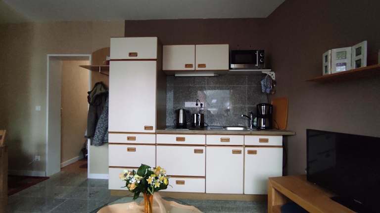 Die Unterkunft bietet eine voll ausgestattete Küche mit Kühlschrank, Ofen, Mikrowelle sowie Kaffeemaschine und Wasserkocher. Somit können Gäste ihre eigenen Mahlzeiten zubereiten und am Esstisch dinieren. Für zusätzliche Verpflegungsmöglichkeiten ist ein Grill im Garten verfügbar.