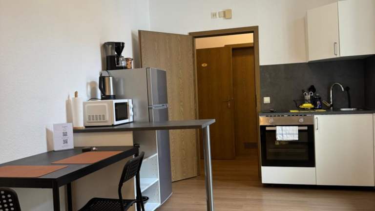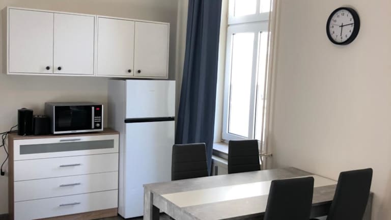 Die Monteurwohnungen verfügen über eine voll ausgestattete Küche, die es den Gästen ermöglicht, ihre eigenen Mahlzeiten zuzubereiten. Eine Kaffeemaschine und ein Wasserkocher stehen ebenfalls zur Verfügung. Essen kann auf Wunsch auch in die Unterkunft geliefert werden. Minimärkte in der Nähe bieten zusätzlich Verpflegungsmöglichkeiten an.