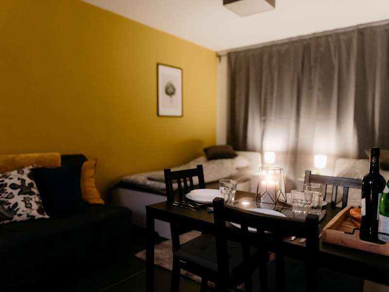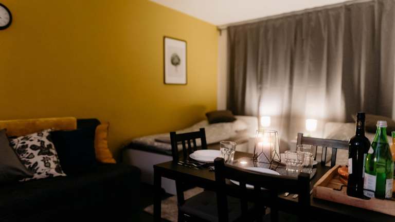 Die Unterkunft bietet ein Schlafzimmer, ein Wohnzimmer mit einem Flachbild-TV sowie eine voll ausgestattete Küche mit Kühlschrank. Ein Badezimmer ist ebenfalls vorhanden. Handtücher und Bettwäsche werden bereitgestellt. Es handelt sich um eine Nichtraucherunterkunft.