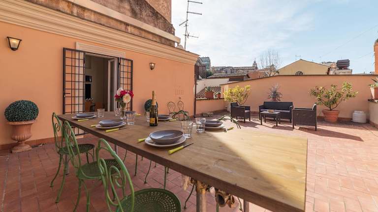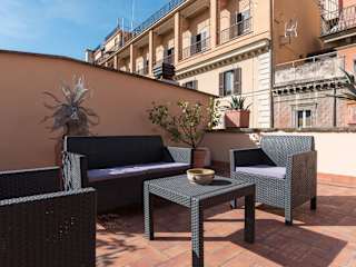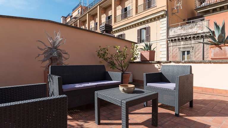 Die Unterkunft Monti Stunning Apartment with Terrace bietet eine gemeinschaftliche Lounge und eine Terrasse. Sie verbindet die Bequemlichkeit einer voll ausgestatteten Ferienwohnung mit einem zentralen Standort in Rom.