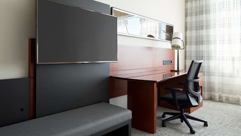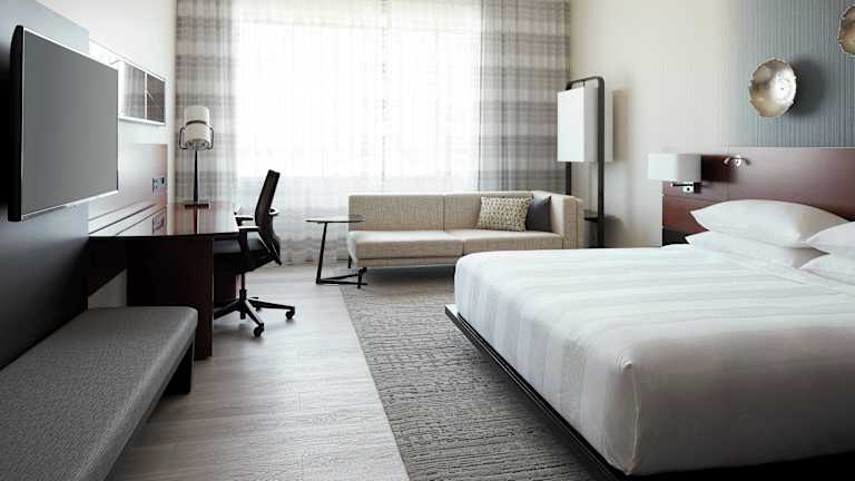 Die modernen Zimmer im Marriott Montreal Airport In-Terminal Hotel sind mit einem Flachbild-TV, einem Minikühlschrank, einem Safe und einer Kaffeemaschine ausgestattet. Kostenloses WLAN ist in den öffentlichen Bereichen verfügbar. Die Zimmer bieten auch einen komfortablen Sitzbereich und ein eigenes Badezimmer mit kostenlosen Pflegeprodukten.