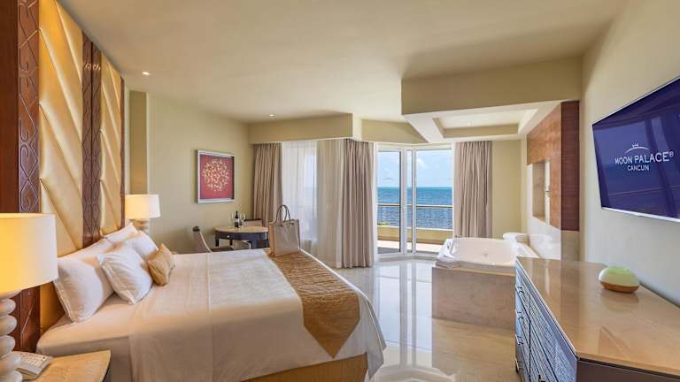 Die Zimmer im Moon Palace Cancun - All Inclusive sind luxuriös und bieten eine Whirlpool-Badewanne für 2 Personen. Jedes Zimmer verfügt über einen Flachbild-Sat-TV, eine Minibar, einen Spirituosenspender und einen eigenen Balkon. Die Einrichtung ist modern und komfortabel, so dass Sie sich wie zu Hause fühlen können.