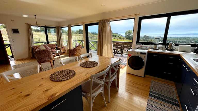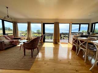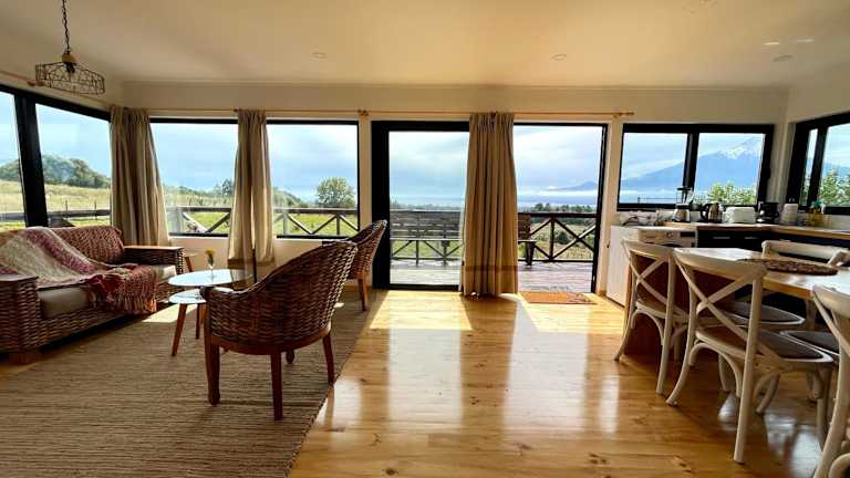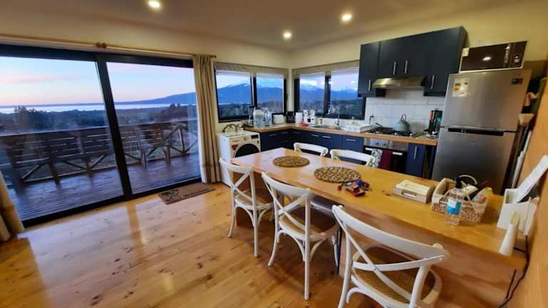 Moon River Puerto Varas bietet Übernachtungsmöglichkeiten in einem Ferienhaus mit einem Garten und einer Terrasse mit Bergblick. Die Unterkunft ist ideal für Familien oder Gruppen, die eine zeitgemässe Ausstattung mit Bequemlichkeiten suchen.