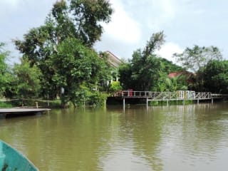 Sieben kleine Bungalows für zwei Personen in typischem Thai-Stil liegen direkt am Moon River; von ihren gedeckten Terrassen gewähren sie einen Blick auf den Fluss mit seinen wechselnden Wasserständen und Stimmungen. Ein weiterer Bungalow mit zwei geräumigen Schlafzimmern, gemeinsamem Bad und gedeckter Terrasse wurde kürzlich hinzugefügt. Ein größeres Ferienhaus enthält zwei geräumige Wohneinheiten [Zimmer, Bad] und eine große gedeckte Terrasse. Die ganze Anlage ist in tropische Vegetation gebettet.