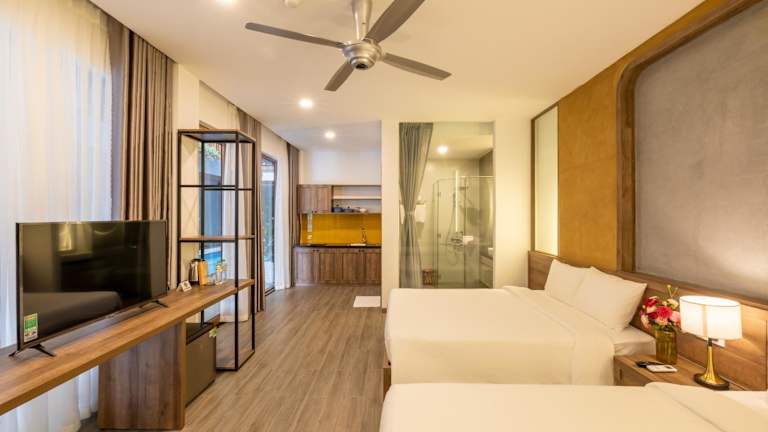 Die Zimmer im Moon Sun Boutique Villa Hotel sind mit Klimaanlage, Kleiderschrank, Balkon mit Poolblick, eigenem Badezimmer, Flachbild-TV, Bettwäsche und Handtüchern ausgestattet. Jedes Zimmer hat einen Wasserkocher, einige sind zusätzlich mit einer Küche, Kühlschrank und Herdplatte ausgestattet. Alle Wohneinheiten bieten den Gästen eine Minibar.