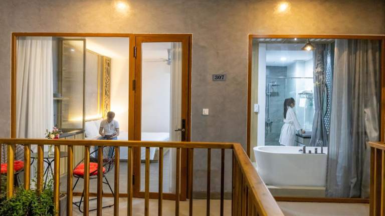 Im Moon Sun Boutique Villa Hotel haben die Gäste Zugang zu einem Fitnesscenter und einem Innenpool.