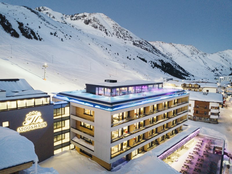 Wohlfühlen im 4****superior Hotel Mooshaus In unserem familiär geführten Hotelbetrieb, der im Tiroler Stil erbaut wurde, sind folgende Hotelleistungen für Sie zusätzlich inkludiert: Endless Sky Pool - der höchst gelegene Infinity-Pool der Alpen! Beheizter Außenpool mit atemberaubenden Blick auf die Bergwelt bzw. Skipiste! Beheiztes Ski-Depot mit direktem Zugang zur Piste Windgeschütze Panoramaterrassse mit Liegestühle Cocktailbar in der Hotelhalle Eigene Raucherlaunch in unserer Hotelhalle Ermässigung für Skischule, Skiservice und Skiverleih bei Gerber Sports Massagen und verschiedene Anwendungen gegen Gebühr Kosmetikbehandlungen gegen Gebühr