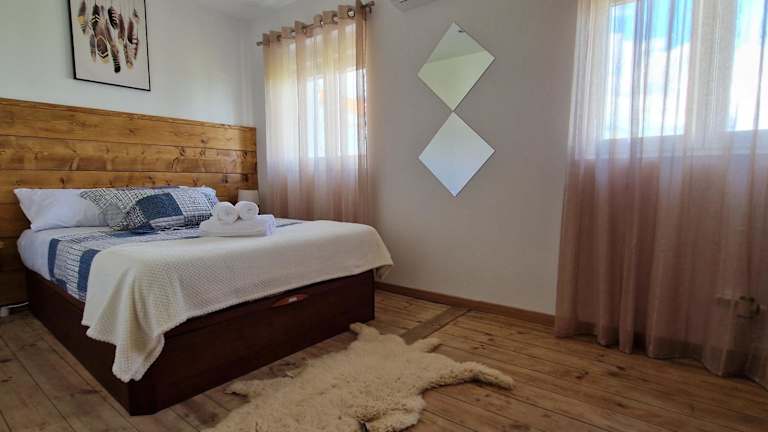 Das Ferienhaus bietet zwei Schlafzimmer und verfügt über ein Wohnzimmer mit einem Flachbild-TV mit Kabelkanälen. Eine voll ausgestattete Küche mit Kühlschrank und Geschirrspüler steht zur Verfügung. Zudem gibt es ein Badezimmer mit Haartrockner. Handtücher und Bettwäsche werden bereitgestellt.