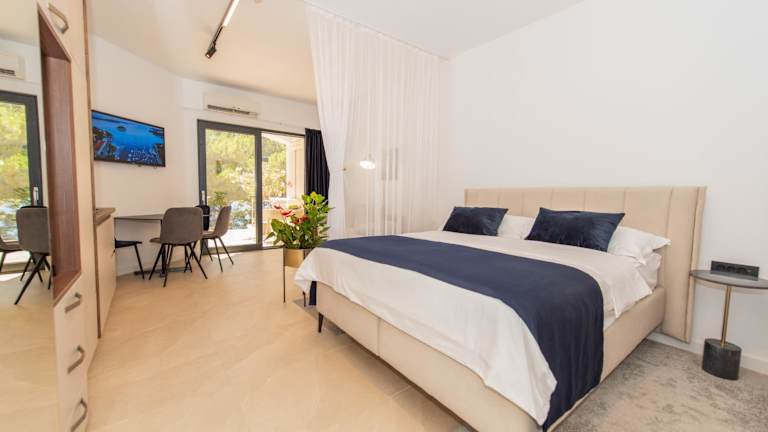 Die More Medici Apartments liegen in einer malerischen Umgebung direkt am Strand und bieten Unterkünfte zur Selbstverpflegung mit eigenem Balkon und Meerblick. Die Apartments wurden 2024 komplett renoviert und sind mit einer Küchenzeile ausgestattet sowie einem offenen Ess- und Wohnbereich mit Sat-TV. WLAN ist in allen Bereichen kostenlos nutzbar. Zu den Annehmlichkeiten gehören auch ein Aussenpool und Grillmöglichkeiten.