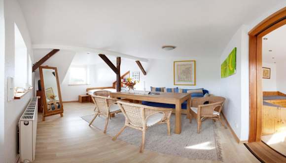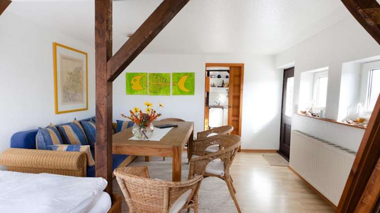 Die Ferienwohnung besteht aus einem Schlafzimmer, einem Wohnzimmer, einer voll ausgestatteten Küche mit Kühlschrank und Kaffeemaschine sowie einem Badezimmer mit Badewanne oder Dusche und einem Haartrockner. Handtücher und Bettwäsche werden bereitgestellt.