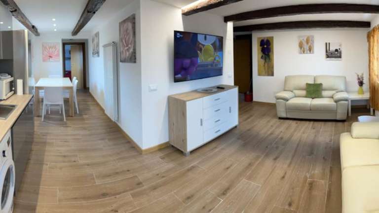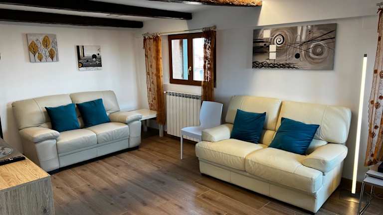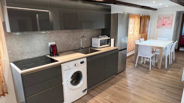 Die Ferienwohnung besteht aus 3 Schlafzimmern und einem Wohnzimmer. Eine voll ausgestattete Küche mit Kühlschrank und Kaffeemaschine ist ebenfalls vorhanden. Zudem sind 3 Badezimmer mit Bidet und Dusche vorhanden. Handtücher und Bettwäsche werden bereitgestellt.