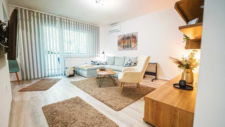 Móriczka Apartman ist eine heimelige Ferienwohnung mit einem Balkon und einer Terrasse. Sie bietet Platz für Gäste und überzeugt durch die helle und freundliche Atmosphäre.
