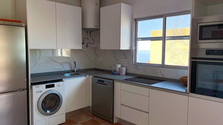 Das Ferienhaus umfasst 3 Schlafzimmer sowie eine Küche mit Kühlschrank und Ofen. Es sind 2 Badezimmer vorhanden, die jeweils mit einer Dusche, einem Haartrockner und einer Waschmaschine ausgestattet sind. Handtücher und Bettwäsche werden bereitgestellt.