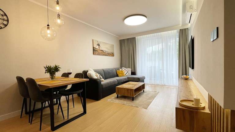 Die Unterkunft Morska Perła befindet sich in der Nähe des Strandes in Dźwirzyno, nur 2,5 km vom Strand entfernt. Der Strand Rogowo ist lediglich 900 m entfernt. Strand Mrzeżyno Wschód liegt 2,7 km von der Unterkunft entfernt. Kolberg Bahnhof ist in einer Entfernung von 16 km zu finden. Der nächstgelegene Flughafen, der Flughafen Stettin-Goleniów, ist 98 km entfernt.