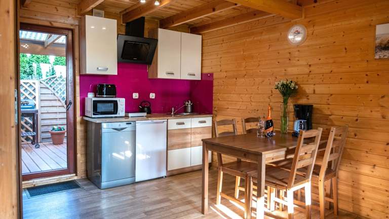 Die Zimmer der Unterkunft Morze Domków Wellness & Spa sind modern eingerichtet und verfügen über einen Sitzbereich, einen Satelliten Flachbild-TV sowie eine voll ausgestattete Küche mit Kühlschrank, Geschirrspüler, Mikrowelle und Herdplatte. Ein eigenes Badezimmer mit Dusche und Haartrockner ist ebenfalls vorhanden. Für zusätzlichen Komfort sorgen eine Kaffeemaschine und ein Wasserkocher.