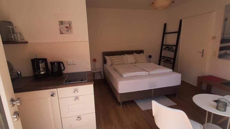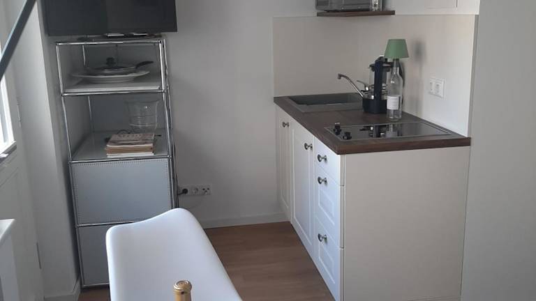 Die Ferienwohnung verfügt über eine voll ausgestattete Küchenzeile, die den Gästen die Möglichkeit gibt, ihre eigenen Mahlzeiten zuzubereiten. Keine Informationen zu weiteren Verpflegungsmöglichkeiten vorhanden.