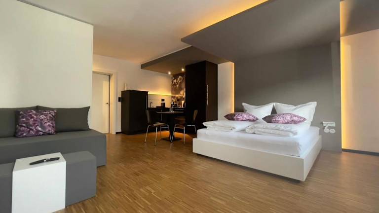 Die Wohneinheiten sind modern gestaltet und verfügen über Kabel-Flachbild-TV, ein eigenes Badezimmer sowie eine voll ausgestattete Küchenzeile. Diese umfasst unter anderem einen Kühlschrank, Geschirrspüler, Herdplatte, Toaster, Kaffeemaschine und Wasserkocher. Familienzimmer sind ebenfalls verfügbar.