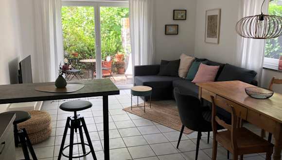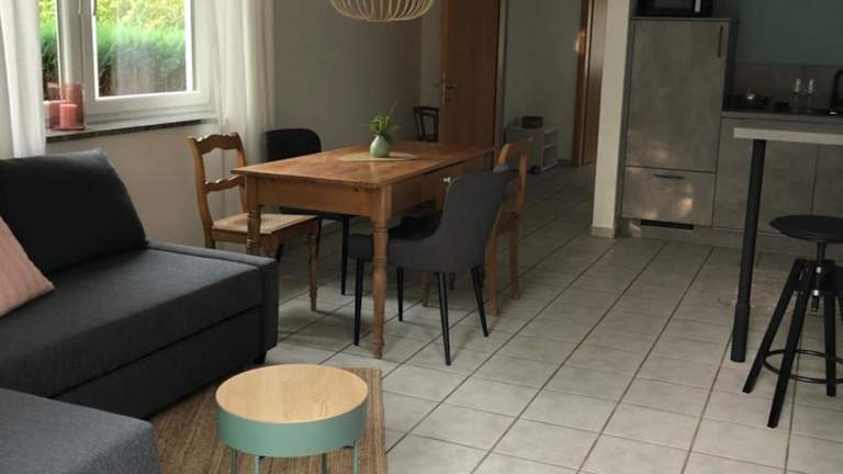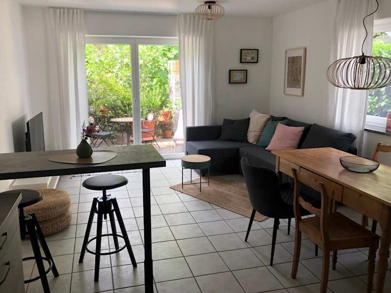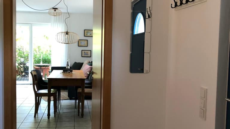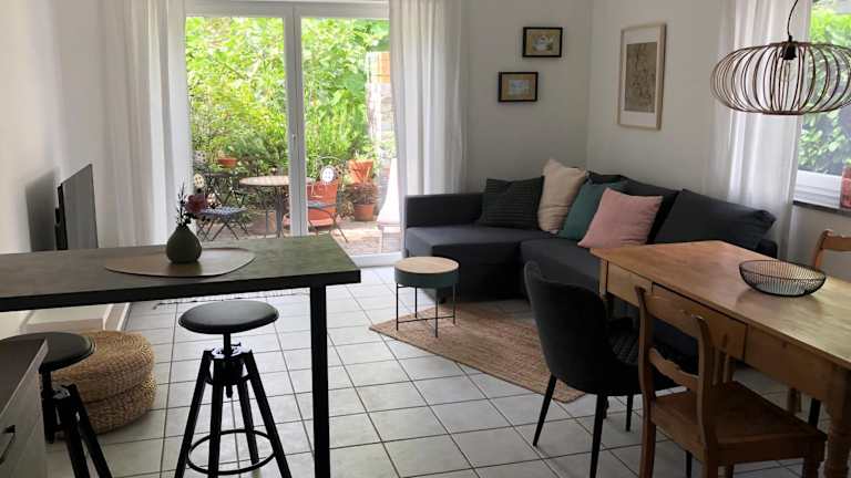 Die Ferienwohnung verfügt über ein Schlafzimmer, ein Wohnzimmer, einen Flachbild-TV sowie eine gut ausgestattete Küche mit Kühlschrank und Geschirrspüler. Ein Badezimmer mit Dusche ist ebenfalls vorhanden. Zur Ferienwohnung gehört zudem eine Terrasse mit Gartenblick. Handtücher und Bettwäsche werden zur Verfügung gestellt.