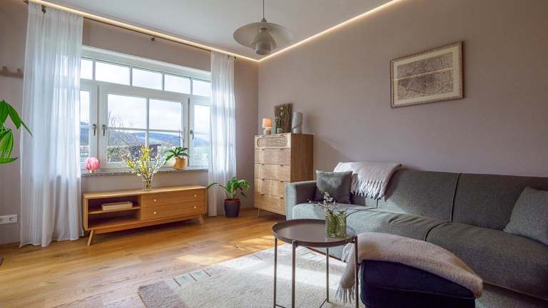 Die Ferienwohnung verfügt über ein Schlafzimmer, ein Wohnzimmer mit Flachbild-TV, eine gut ausgestattete Küche mit Kühlschrank und Ofen, sowie ein Badezimmer mit Dusche. Handtücher und Bettwäsche werden bereitgestellt. Nichtraucherzimmer sind ebenfalls verfügbar.