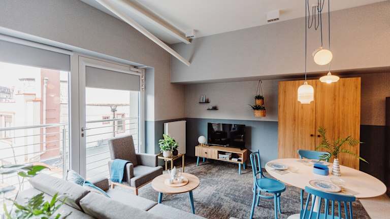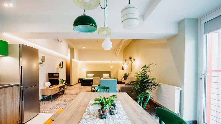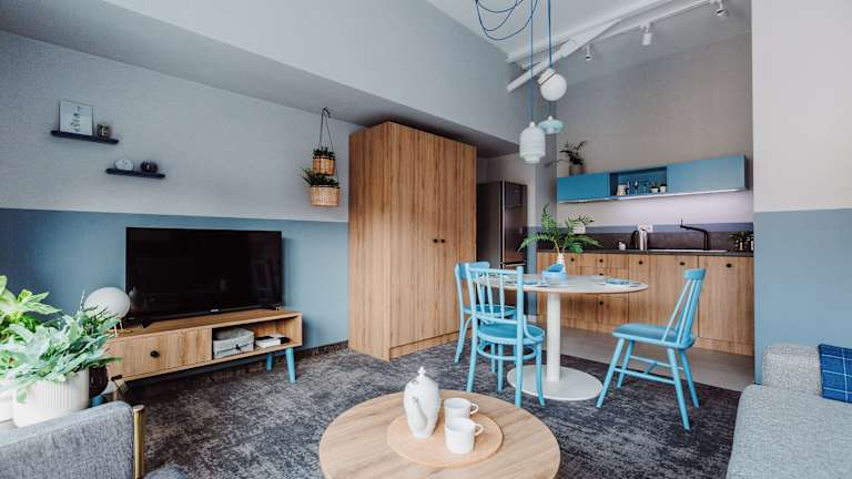 Mosquito Silesia Apartments bietet eine Terrasse sowie eine Bar und ermöglicht den Gästen den Zugang zu kostenlosem Wifi. Die Unterkunft hat sich strikt an Nichtraucherregeln gehalten und hat Sicherheitsvorkehrungen wie Videoüberwachung und Rauchmelder implementiert, um das Wohlbefinden der Gäste zu gewährleisten.