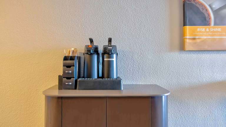 An der Snackbar können Gäste bei einem Drink verweilen. Es stehen Getränke und Snacks zur Verfügung.
