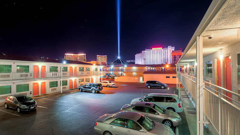 Das Motel befindet sich gegenüber dem MGM Grand in Las Vegas und ist nur wenige Schritte von mehreren Kasinos entfernt. Auch die Freemont Street Experience ist gut erreichbar. Der internationale Flughafen McCarran liegt lediglich 1,9 km entfernt, während das Las Vegas Convention Center in weniger als 5 km erreichbar ist.