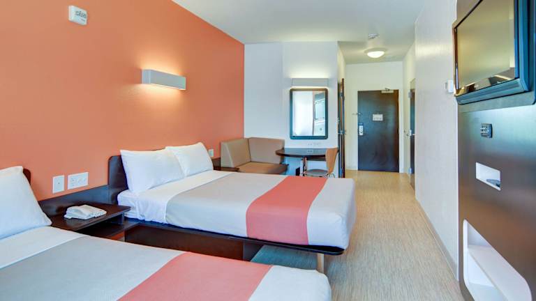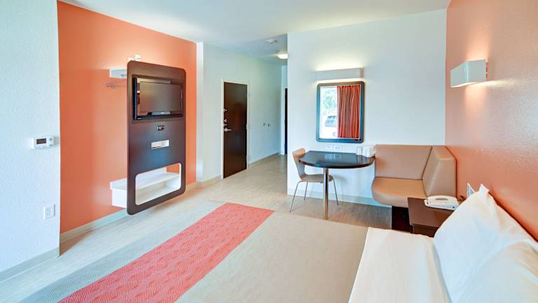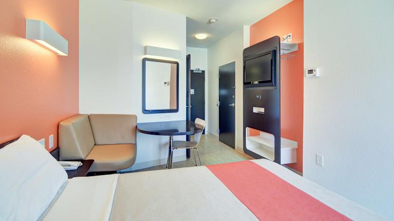 Die modernen Zimmer im Motel 6 Northlake Speedway sind geräumig und verfügen über Holzböden, einen Schreibtisch sowie einen Flachbild-Kabel-TV. Jedes Zimmer bietet zusätzlich ein Telefon mit kostenlosen Ortsgesprächen. Kostenloses WLAN ist ebenfalls in allen Zimmern verfügbar.