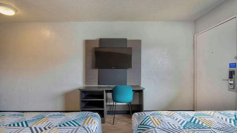 Die Gästezimmer im Motel 6 Santa Fe sind mit einem TV mit Kabelkanälen ausgestattet und verfügen über ein eigenes Badezimmer. Die Zimmer bieten eine angenehme Bequemlichkeit für die Gäste, die Ruhe und Entspannung suchen.