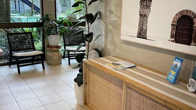Das Motel verfügt über ein Restaurant mit ungehindertem Blick auf den Hafen, das für das Mittag- und Abendessen geöffnet ist. Es bietet eine Speisekarte mit verschiedenen Gerichten sowie eine Auswahl an Weinen, Bier vom Fass und eine Cocktailkarte. Ein Café befindet sich direkt unter dem Restaurant, wo die Gäste Kaffee, Frühstück, Mittagessen und hausgemachte Gebäck mit Aussicht geniessen können. Das Café hat täglich geöffnet.