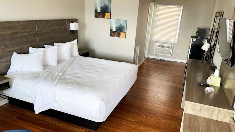 Die Zimmer im Motel Kings Arms sind mit einem Kühlschrank und einer Mikrowelle ausgestattet. Zudem bieten sie einen Sitzbereich sowie Sat-TV mit HBO. Kostenloses Wifi ist in jedem Zimmer verfügbar, und die Schallisolierung sorgt für eine ruhige Atmosphäre. Die Reinigung der Zimmer erfolgt täglich, und Bettwäsche sowie Handtücher werden nach Richtlinien der örtlichen Behörden gewaschen.