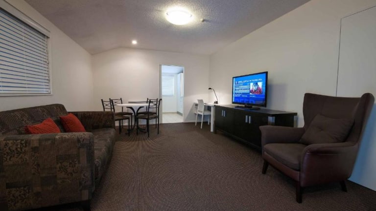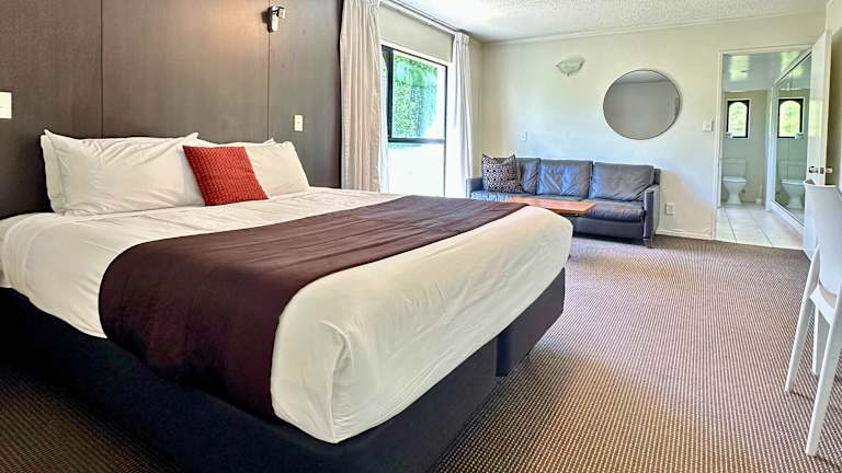Das Motel bietet verschiedene Zimmertypen wie Spa Bath Studio und Standard Studio, jeweils Nichtraucherzimmer mit Innenhofblick. Die Zimmer haben eine Grösse von ca. 20 - 30 m². Ausstattungen umfassen ein Kingsize-Bett oder Einzelbetten, kostenlose Kücheneinrichtungen, kostenlosen Fernseher, modernisierte Badezimmer und in einigen Fällen eine Whirlpool-Badewanne.