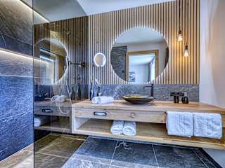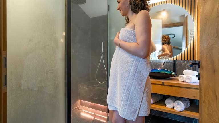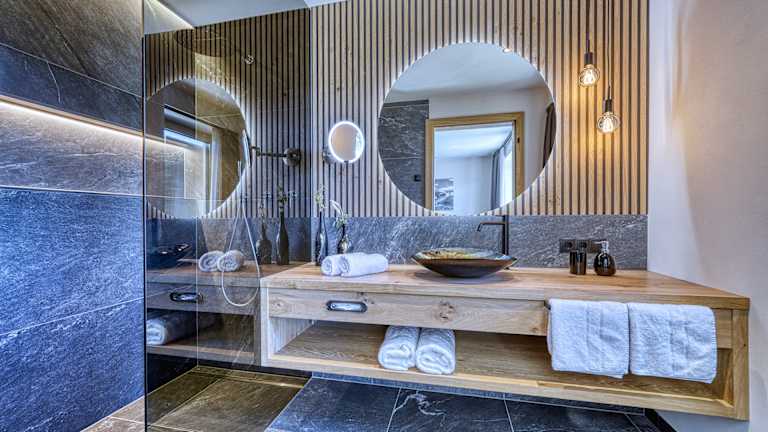 Das Mountain Chalet Schlossberg verfügt über 5 Apartments. Tauchen Sie ein in pure Entspannung und genießen Sie unvergessliche Wohlfühlmomente in unseren modernen Apartment im alpinen Style. Alle Apartments verfügen über eine private Sauna: Finnisch, Infrarot oder Dampf. Drei der eleganten Apartments (Rosengarten, Schlern und Latemar) haben zudem noch einen privaten Whirlpool auf der Terrasse. Mit einem atemberaubenden Blick auf die Dolomiten, können Sie die Seele baumeln zu lassen und sich vollkommen entspannen. Die Apartments sind alpin modern eingerichtet Vom Balkon aus genießen Sie einen herrlichen Blick auf die umliegenden Berge. In unseren voll ausgestatteten Küche und dem Wohnbereich finden Sie alles, was Sie für einen entspannten Aufenthalt benötigen: eine Geschirrspülmaschine, Kühlschrank, elektrisches Backrohr, Filterkaffeemaschine, italienische Mokkamaschine, Toaster, Wasserkocher sowie einen Flachbildschirm mit TV/SAT. Die Schlafzimmer bieten ein komfortable Boxspring-Betten, einen Kleiderschrank und einen Safe. Die stilvollen Badezimmer haben alle eine großzügige Dusche, ein Waschbecken aus Muranoglas, WC, Bidet und einen Föhn. Das Apartment Schwarzhorn verfügt zudem über eine freistehende Badewanne. Handtücher und Bettwäsche werden gestellt. Kostenloses WLAN ist ebenfalls verfügbar.