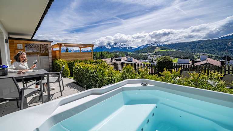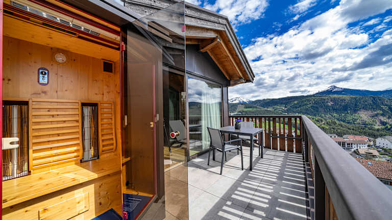 Alpiner Style mit zeitloser Eleganz In absoluter Traumlage, in Deutschnofen, dem sonnenreichsten Dorf Südtirols, genießen Sie malerisches Ambiente und faszinierende Natur. König Laurins Rosengarten, das majestätisches Latemar und der markante Weißhorn ergeben ein Bergpanorama, das Ihnen für immer im Herzen bleibt. Gesichtet direkt von ihrem Apartment aus. Unsere fünf modernen Appartements mit alpinem Style offenbaren den wohl privatesten Urlaub überhaupt. Jedes Apartment verfügt über eine eigene Sauna: Finnisch, Infrarot oder Dampf. Drei der eleganten Apartments (Rosengarten, Schlern und Latemar) haben zudem noch einen privaten Whirlpool. Alle Appartements führen Sie hinaus in Ihren Traumurlaub, auf unendliche Wandertouren, zu winterlichen Ski- und Langläufen oder zu abenteuerlichen Kletterrouten. Nach einem abwechslungsreichen Tag empfängt Sie das Mountain Chalet Schlossberg zurück im sehr familiären Zuhause. Überhaupt ist es der direkte Kontakt zur Gastgeberfamilie, der den Urlaub zu etwas Besonderem werden lässt. Persönliche Wandertipps und Restaurantempfehlungen gibt Ihnen Gastgeberin Martina nur allzu gerne. Gute Gespräche, ein unbeschwertes Lachen, ein herzliches Miteinander und die Zeit vergessen – mitten in den Bergen, hoch über dem Alltag – hier im Mountain Chalet Schlossberg.