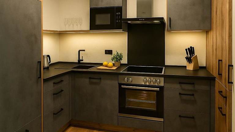 Die Ferienwohnung ausgestattet mit einem Flachbild-TV, einer gut ausgestatteten Küche mit Kühlschrank, Geschirrspüler und Ofen sowie einem Badezimmer mit Dusche und Haartrockner. Die umfangreiche Ausstattung sorgt für einen angenehmen Aufenthalt.
