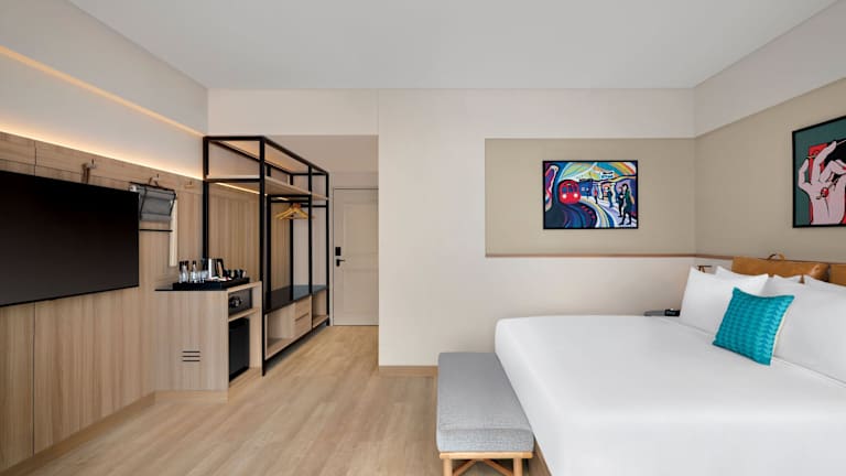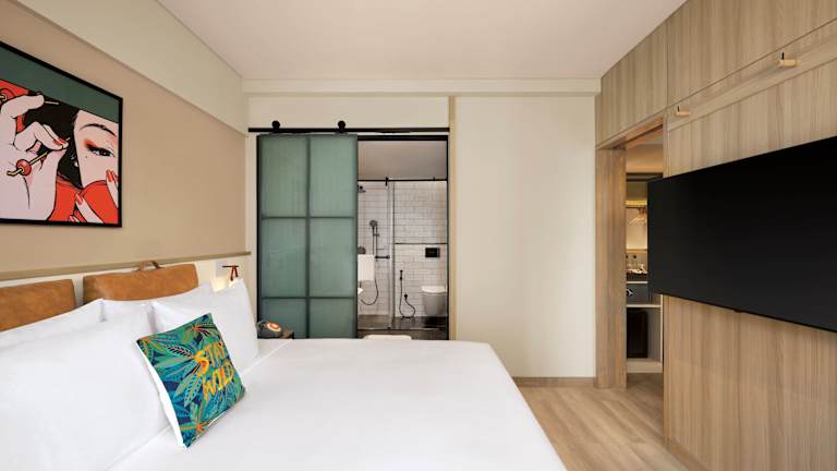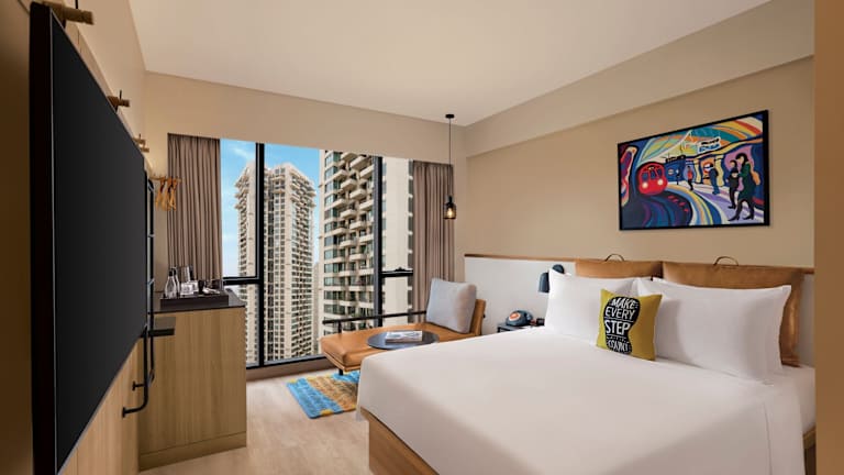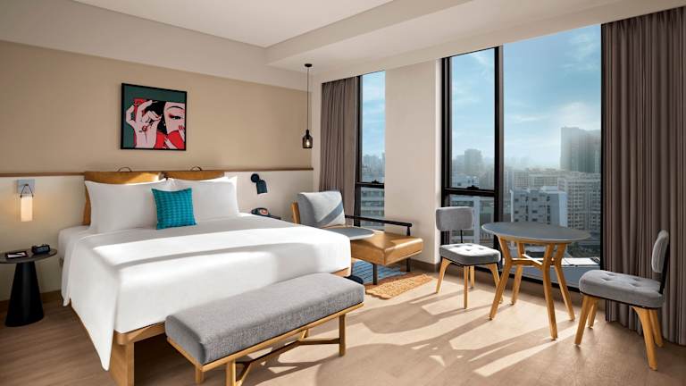 Die Zimmer in der Unterkunft Moxy Mumbai Andheri West sind mit Klimaanlage, einem Sitzbereich sowie einem Flachbild-TV mit Kabelkanälen ausgestattet. Die Wohneinheiten verfügen über einen Safe, ein eigenes Badezimmer mit Bidet und kostenlosen Pflegeprodukten sowie über einen Haartrockner. Zusätzlich bieten alle Zimmer eine Minibar.