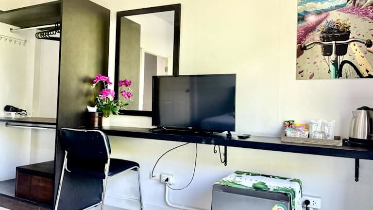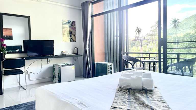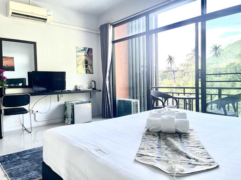 Mr.T Kamala Room bietet eine rund um die Uhr besetzte Rezeption sowie eine Terrasse. Gäste profitieren von kostenlosem WLAN und einer Privatparkiermöglichkeit auf dem Gelände. Die klimatisierte Ferienwohnung ist modern eingerichtet.