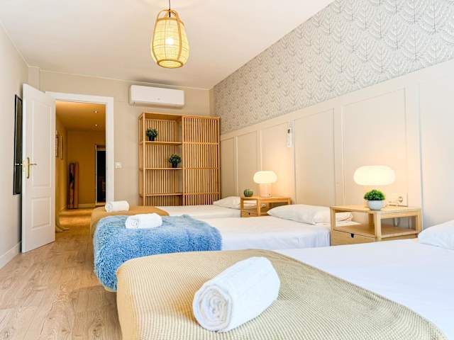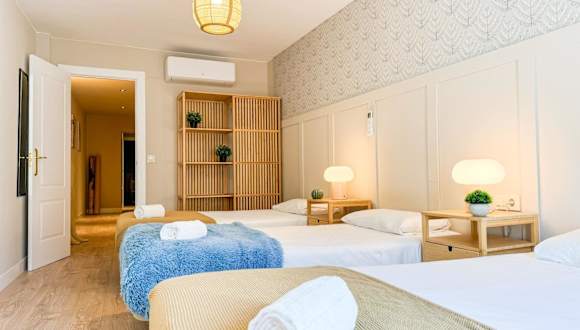 Die Ferienwohnung umfasst 3 Schlafzimmer, ein Wohnzimmer und 2 Badezimmer mit Dusche und kostenlosen Pflegeprodukten. Zudem stehen eine Klimaanlage, kostenloses WLAN und eine voll ausgestattete Küche mit Kühlschrank und Kaffeemaschine zur Verfügung. Handtücher und Bettwäsche sind ebenfalls vorhanden.