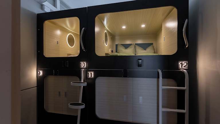 Die Zimmer im MUE Cubes - Capsule Hotel sind mit einem Kleiderschrank ausgestattet. Jedes Zimmer bietet Zugang zu einem Gemeinschaftsbad mit Dusche und Haartrockner. Zudem verfügen die Zimmer über Klimaanlage und einen Schreibtisch. Die Gäste haben kostenlosen Zugang zu Wifi.