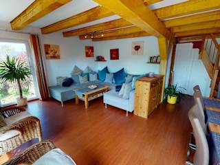 Die Ferienwohnung verfügt über 3 Schlafzimmer, ein Wohnzimmer mit TV, eine gut ausgestattete Küche mit Kühlschrank und Geschirrspüler sowie 2 Badezimmer mit einer Dusche. Weiterhin stehen den Gästen Gartenmöbel zur Verfügung.