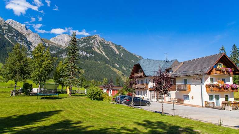 Die Unterkunft Mühlrad Appartements befindet sich in Ramsau am Dachstein in der Region Steiermark. In der Nähe erreicht man den Dachstein Skywalk in 12 km und das Schloss Trautenfels in 42 km. Der nächstgelegene Flughafen ist der Flughafen Salzburg, 95 km entfernt.