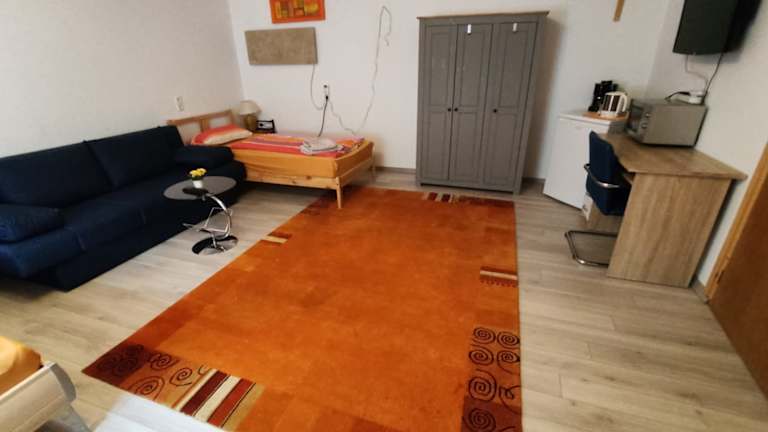 Inmitten von Gangkofen an einer ruhigen Seitenstraße steht "Müllers Monteur- und Gruppenunterkunft Gangkofen", etwa 20km vom BMW-Werk in Dingolfing entfernt. Nach Bad Birnbach sind es 39 km, nach Bad Griesbach 47 km und nach Straubing 50 km. der nächste Flughafen in München ist nur 58 km entfernt. Das Haus bietet auf ca. 137qm ... - ausreichend Platz für bis zu 9 Gäste in 2 Einbett-, 2 Zweibett- und einem Dreibettzimmer, die auch einzeln gemietet werden können, - Kleiderschrank und Sitzgelegenheit in jedem Zimmer - Sat-TV im Wohnzimmer und Dreibettzimmer - kostenlose Parkplätze vor dem Haus und öffentlicher Parkplatz in unmittelbarer Nähe - moderne Infrarotheizung in allen Räumen - kostenloses WiFi im gesamten Haus - Bettwäsche und Handtücher werden gestellt ... Gemeinschaftbereich mit ... - voll eingerichteter Küche mit Spülmaschine, Ceran-Kochfeld, Backofen, Kühl-/Gefrierkombination, Mikrowelle, Esstisch zur gemeinsamen Nutzung - gemeinsamem Badezimmer mit Dusche und Wanne, WC, Waschmaschine, Trockner - gemeinsamem Gäste-WC - gemeinsamem Wohnzimmer mit Couchecke, Eckbank mit Tisch - Balkon und Terrasse mit Sitzmöbeln