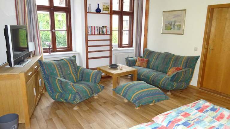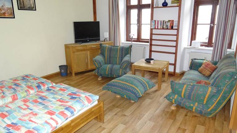 Müllers zweite Ferienwohnung befindet sich in der Altstadt von Görlitz, nur 800 m vom Gerhart-Hauptmann-Theater und 200 m vom Görlitzer Rathaus entfernt. Der Hauptbahnhof Görlitz ist in 1,7 km erreichbar und der Naturschutz-Tierpark Görlitz liegt 3 km entfernt.