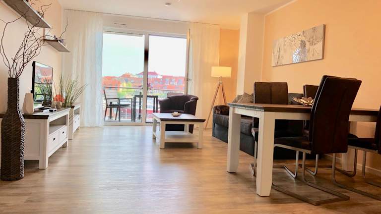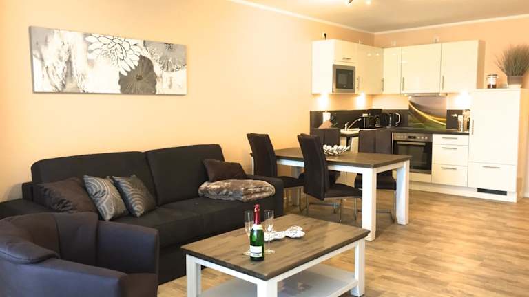 Die Ferienwohnung beinhaltet ein Schlafzimmer, ein Wohnzimmer, einen Balkon mit Stadtblick sowie ein Badezimmer mit Dusche. Zu den Annehmlichkeiten gehören ein Flachbild-TV, eine gut eingerichtete Küche mit Kühlschrank und Geschirrspüler. Handtücher und Bettwäsche können gegen Aufpreis bereitgestellt werden.