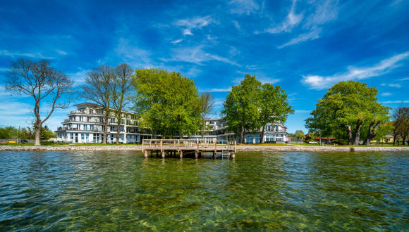 Idyllisch schöne Urlaubsmomente verspricht das Aparthotel direkt am Ufer der Müritz. Das Müritzpalais vereint dabei die Annehmlichkeiten eines Hotels mit dem Komfort exklusiv ausgestatteter Ferienwohnungen. 84 hell und offen gestaltete Hotelapartments erwarten Sie im behaglich-modern Stil und bieten einen fantastischen Blick auf die Müritz oder die Altstadt von Waren. Den Tag beginnen Sie bei einem ausgiebigen Frühstück im Restaurant mit Außenterrasse, besondere Verwöhnmomente verspricht der Wellnessbereich mit Pool & Saunen und der exklusive Badesteg lockt zu einem Sprung in das klare Wasser der Müritz.