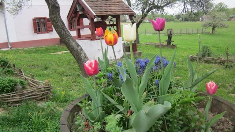 Die Unterkunft Múltidéző Porta - Népi Műemlék Házak az Őrségben ist von einem Garten umgeben und bietet eine heimelige Atmosphäre. Gästen stehen verschiedene Wohneinheiten mit einer Veranda oder einem Patio zur Verfügung.